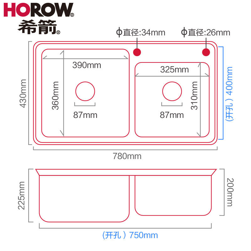 鹰卫浴高级不锈钢双槽洗菜盆KS-3011.2