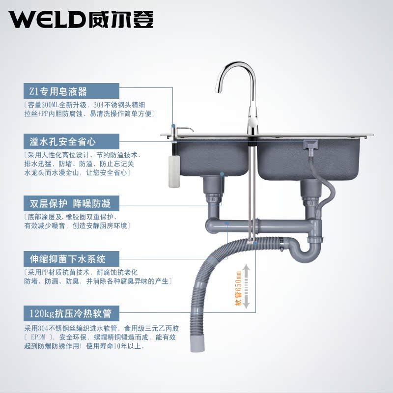 威尔登304水槽不锈钢双槽洗碗池ES605