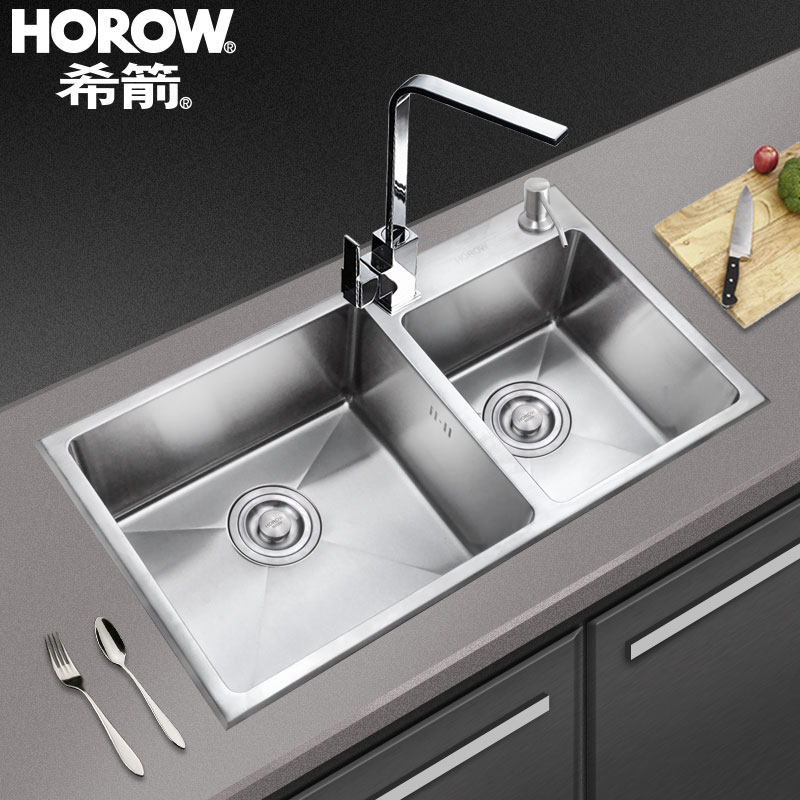 希箭卫浴不锈钢水槽双槽洗菜盆6845 7843手工水槽