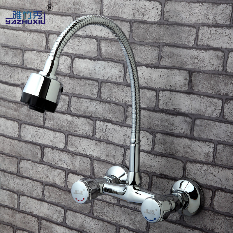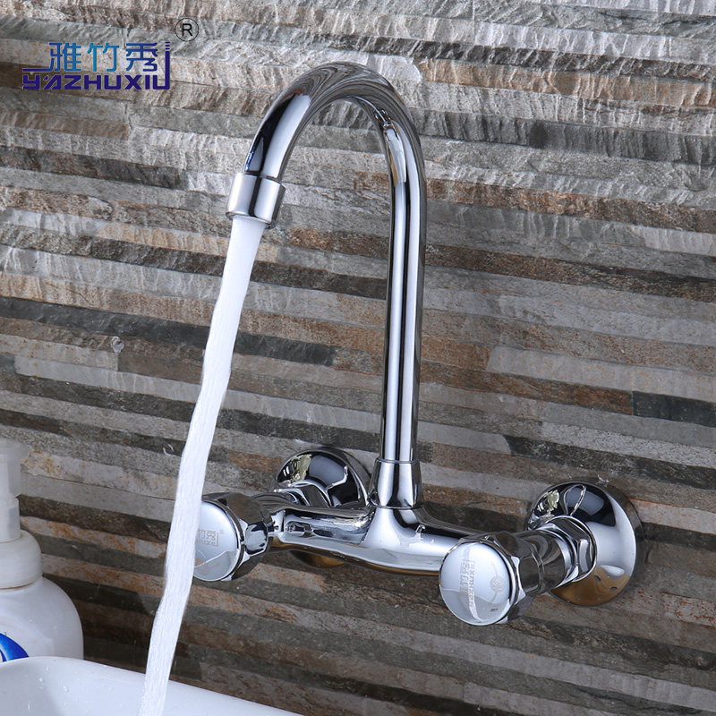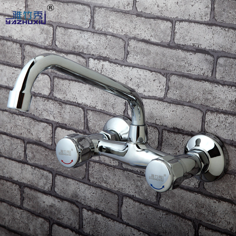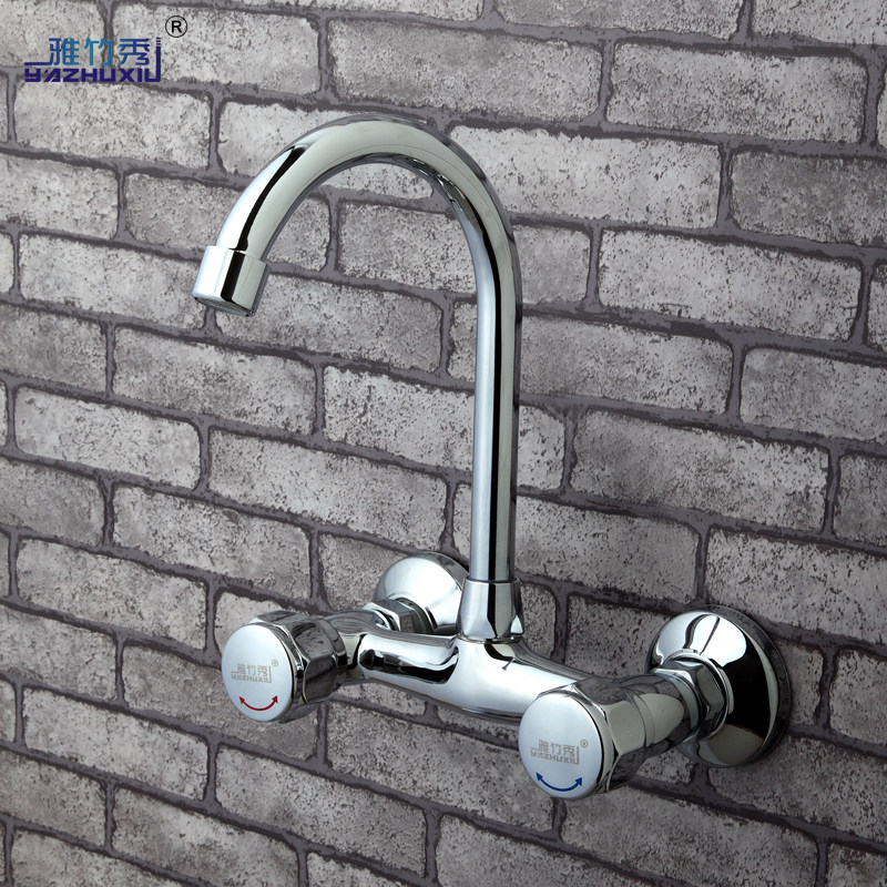 雅竹秀全铜主体入墙式水龙头双把双孔