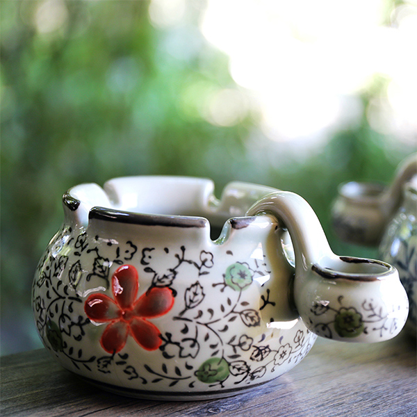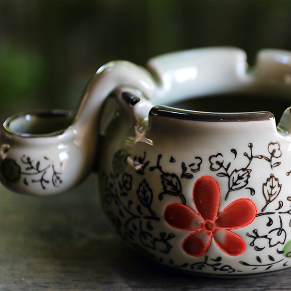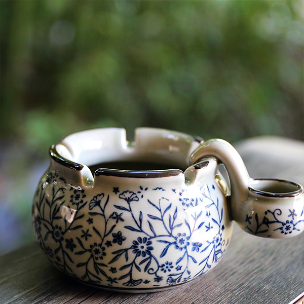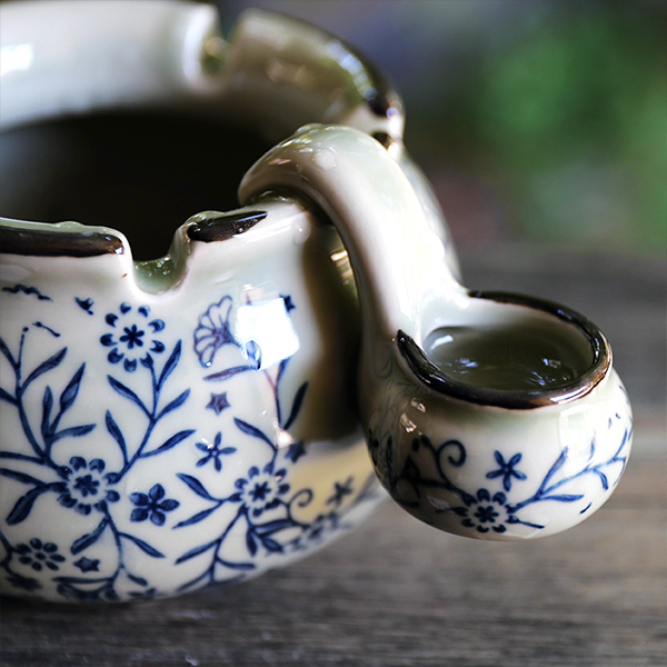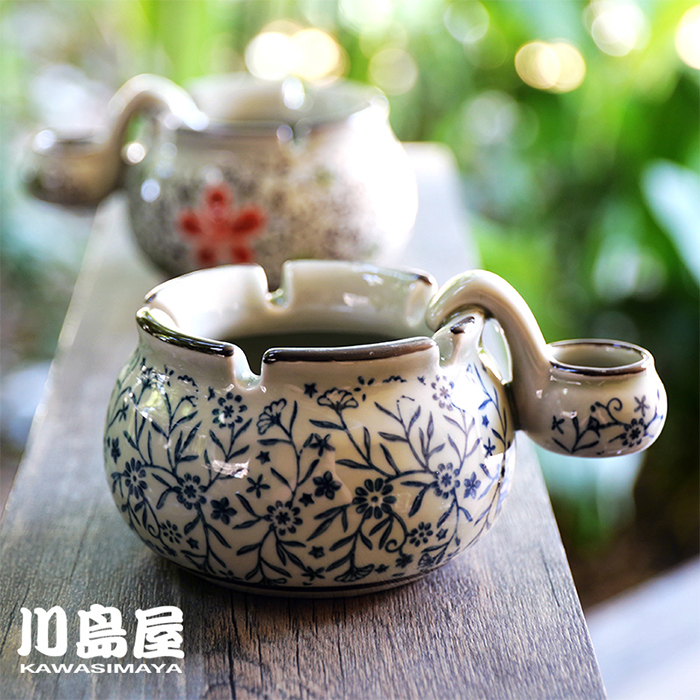 川岛屋日式手绘青花陶瓷带水槽烟灰缸KA-JJ195