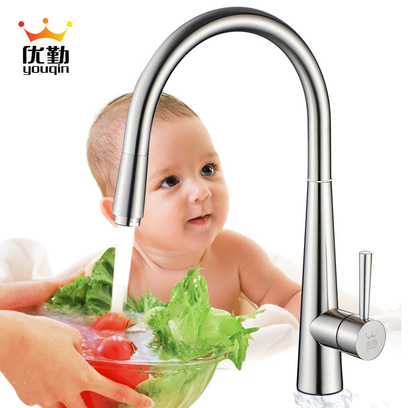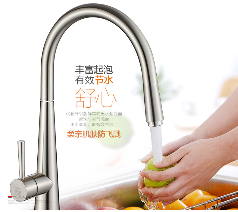 优勤全铜冷热单孔抽拉式水龙头LT609