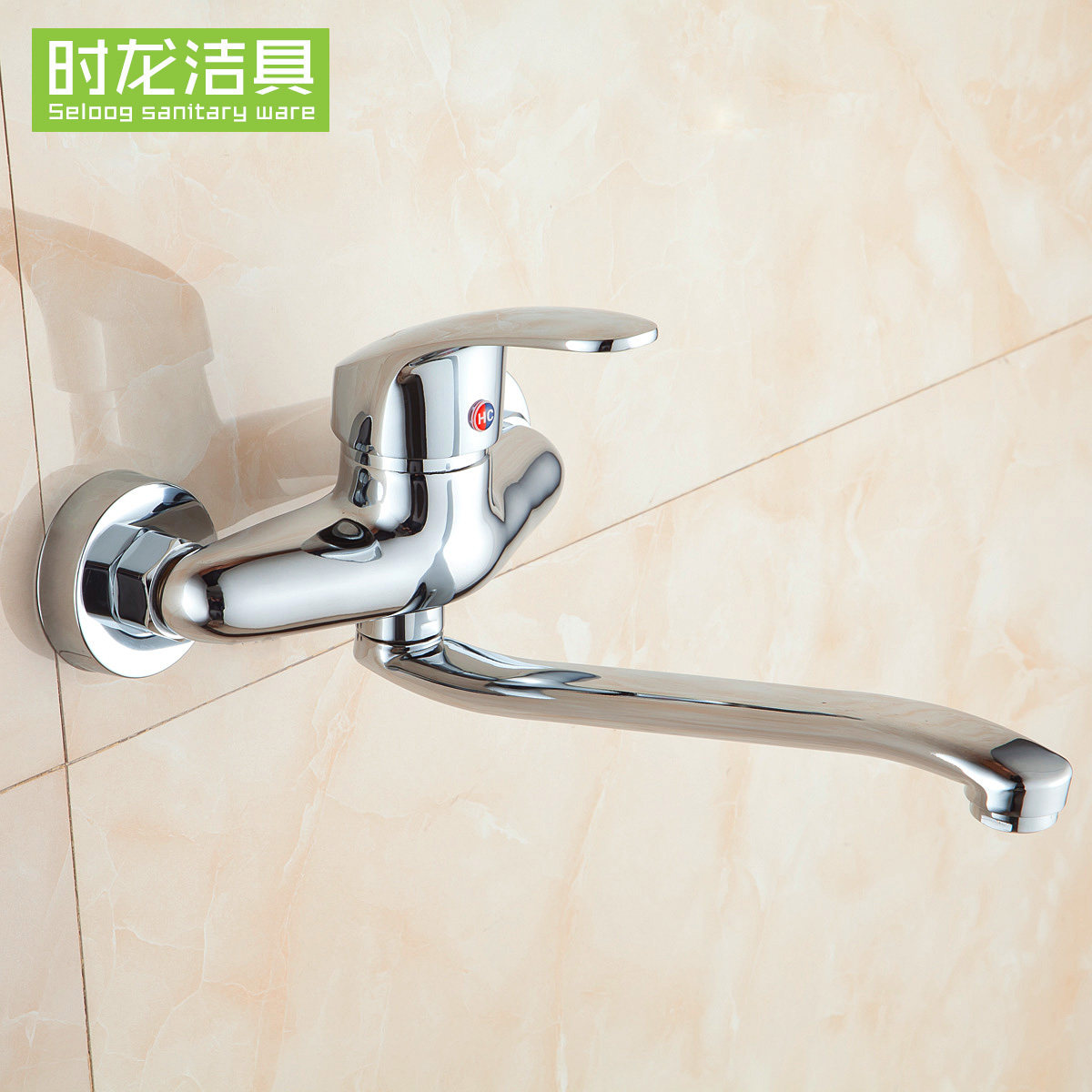 时龙水槽单把双孔全铜冷热水龙头S141201