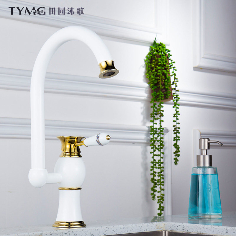 欧式金色加白色欧式洗菜盆水龙头CF-10