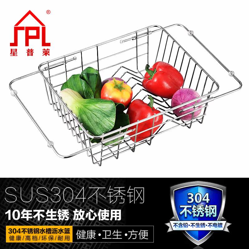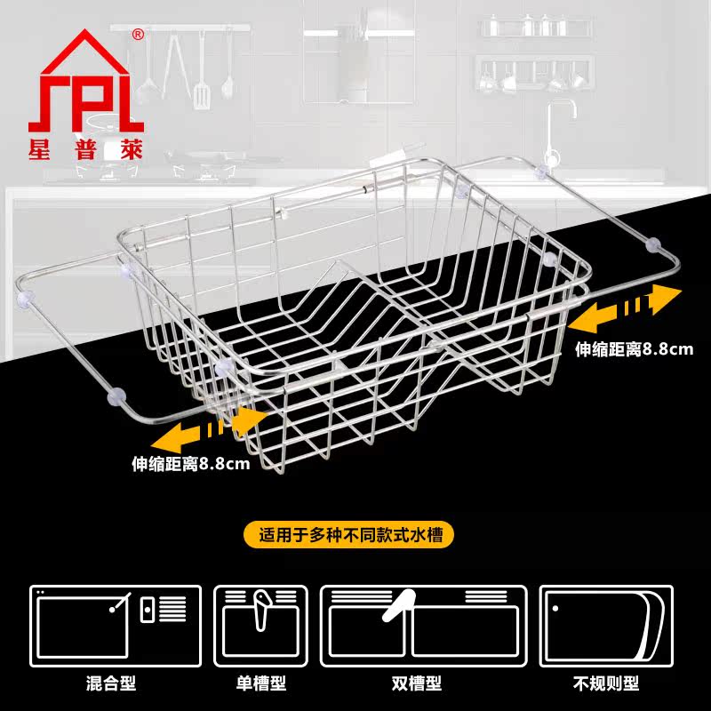 星普莱304不锈钢伸缩水槽置物篮J113-1