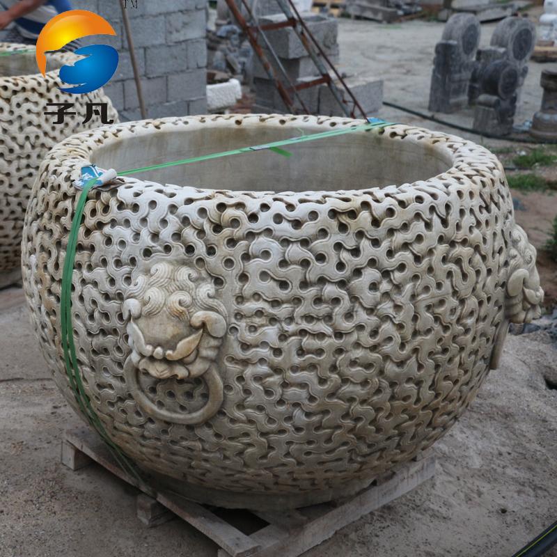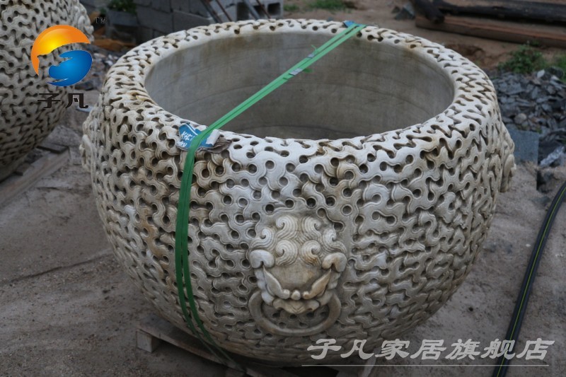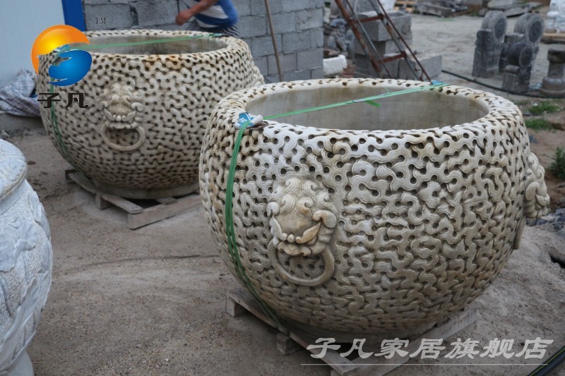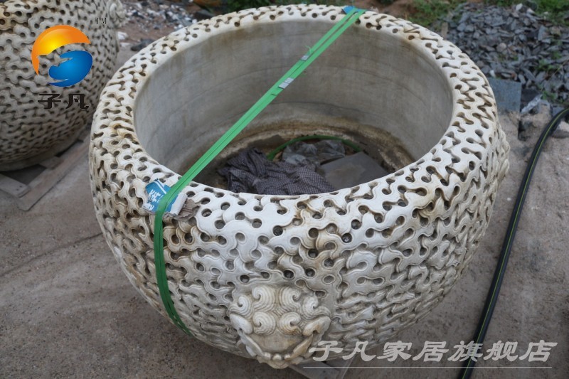 子凡天然青石仿古石雕流水荷花鱼缸YG17