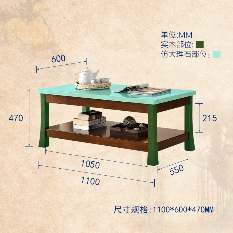 好战友美式茶几实木小户型茶几HZY-CJ-0019