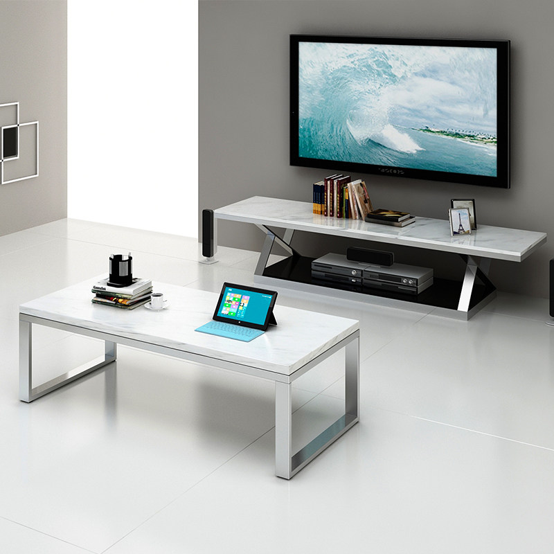 室尚北欧简约现代大理石办公不锈钢茶几A26