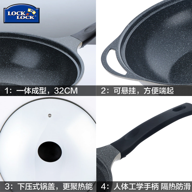 乐扣乐扣32cm大理石陶瓷炒锅麦饭 LCA6325D套装