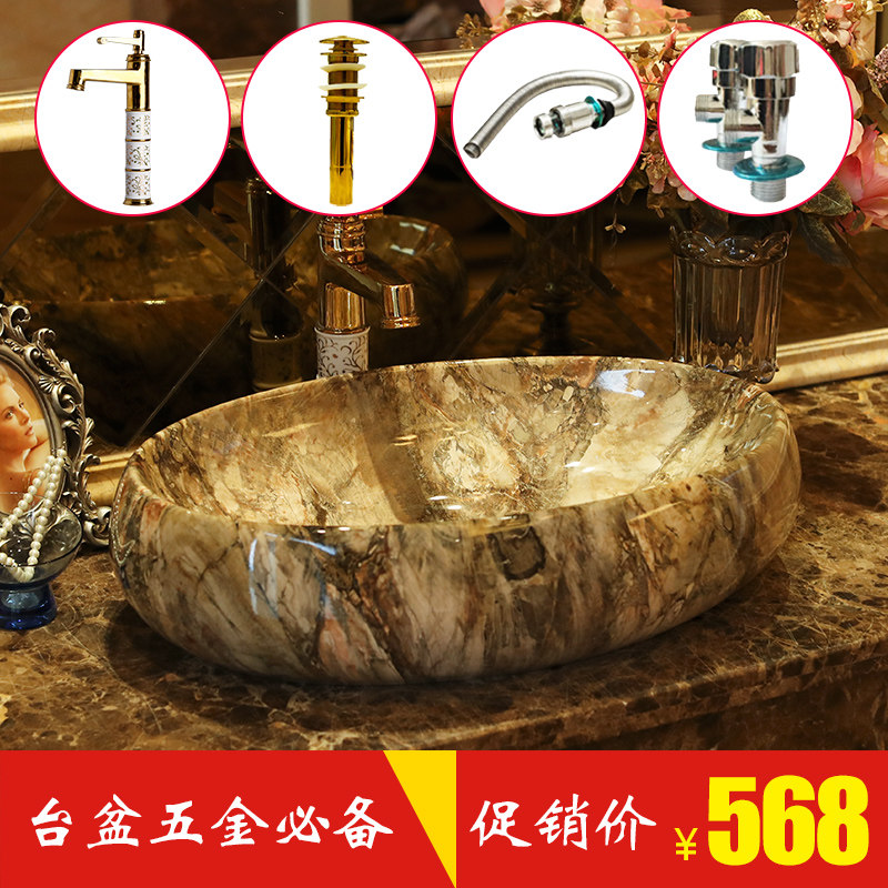 雨泉景德镇陶瓷台上盆 椭圆纯大理石花纹