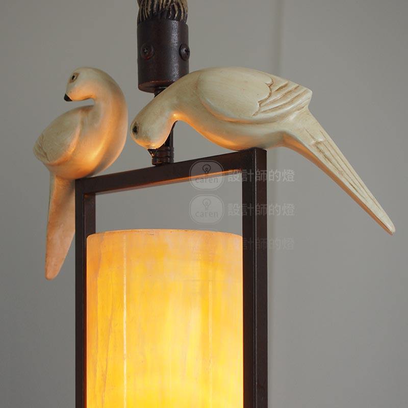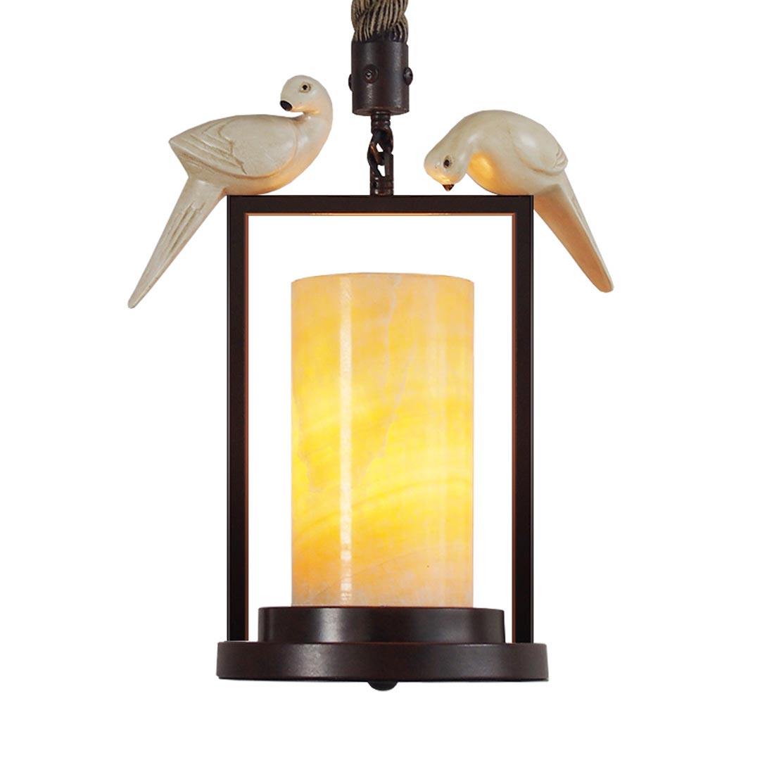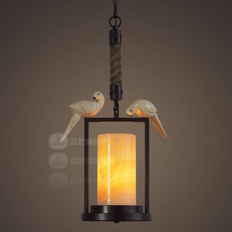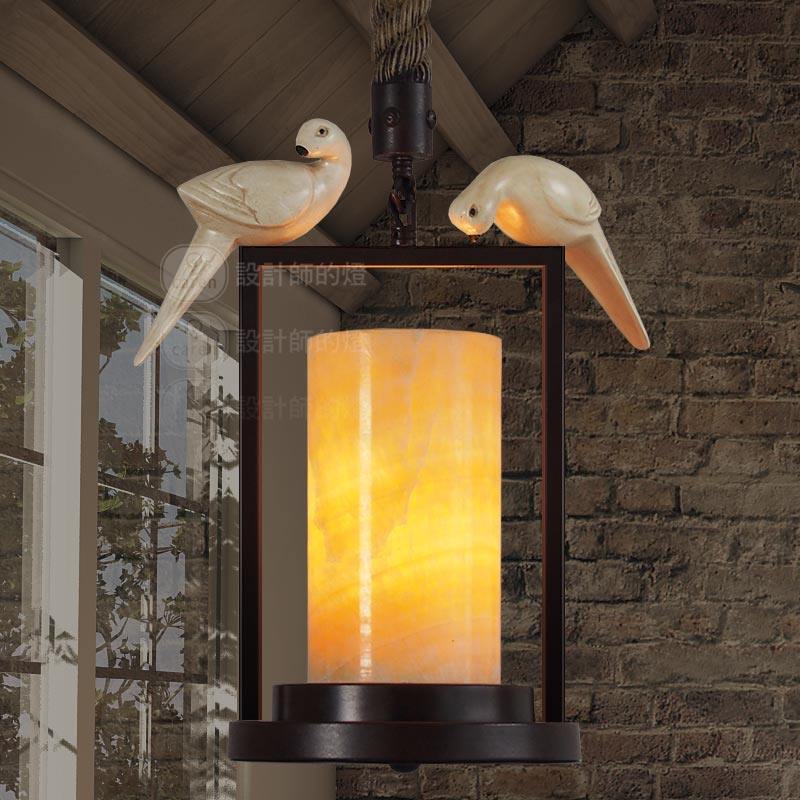 师的灯工业风乡村风大理石麻绳两只小鸟云石吊灯