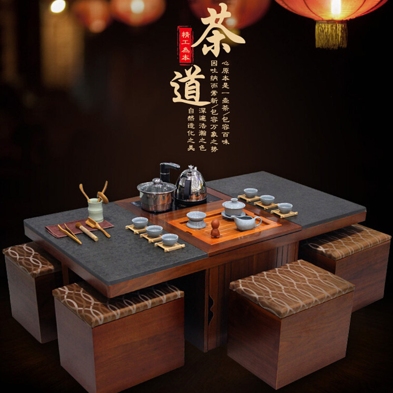 好力屋简约实木火烧石泡茶桌HY-1038#