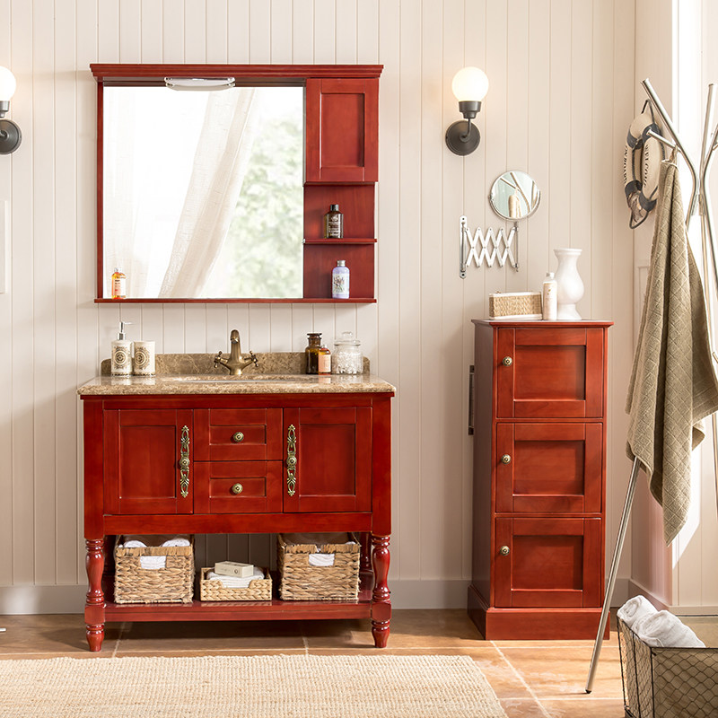 妙洁美式实木落地卫浴洗脸盆7108