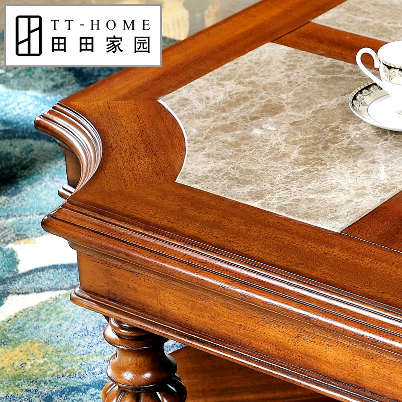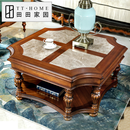 田田家园欧式实木雕花茶几11192Y7