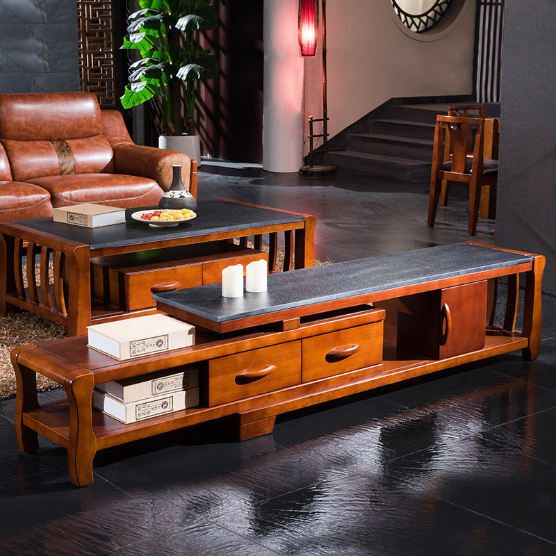 百家汇火烧石中式实木茶桌 HSS-029