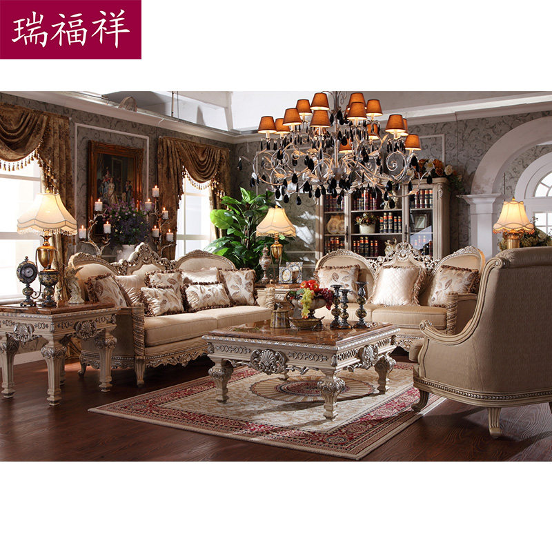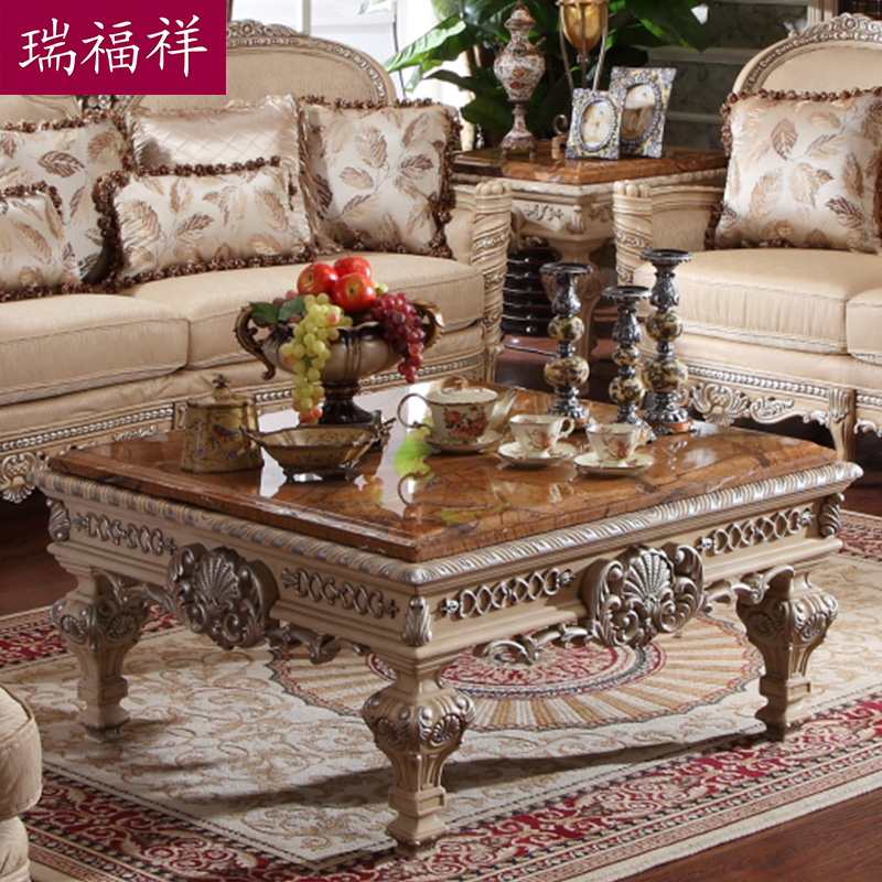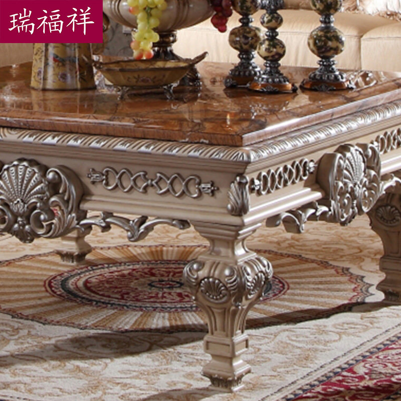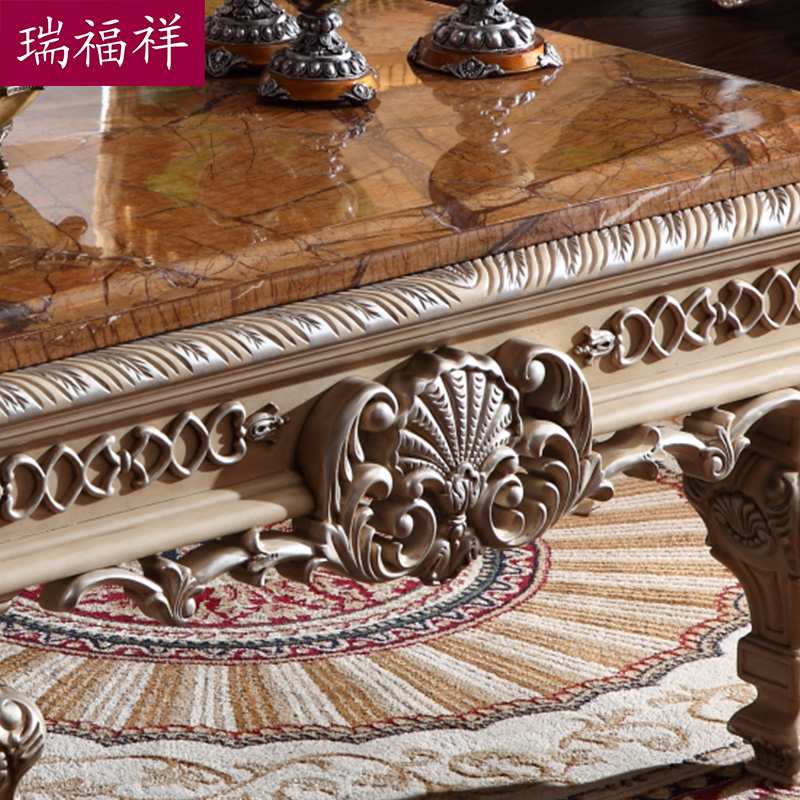 瑞福祥欧式大理石复古实木茶桌 P308