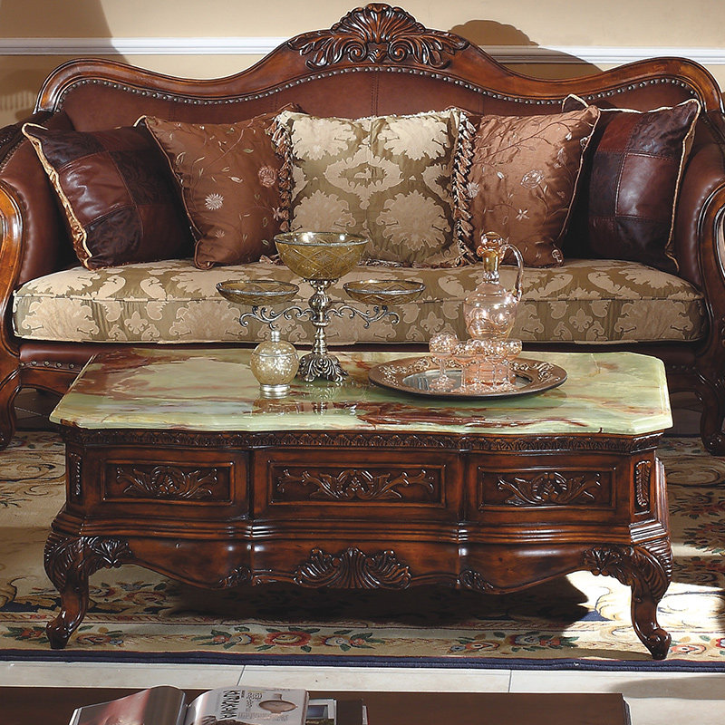 信益轩美式大理石实木雕刻茶桌CJ-200