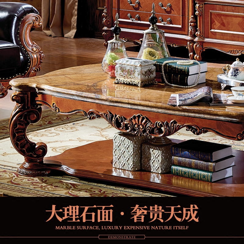爱家居美式大理石台面实木雕花茶几 HR94