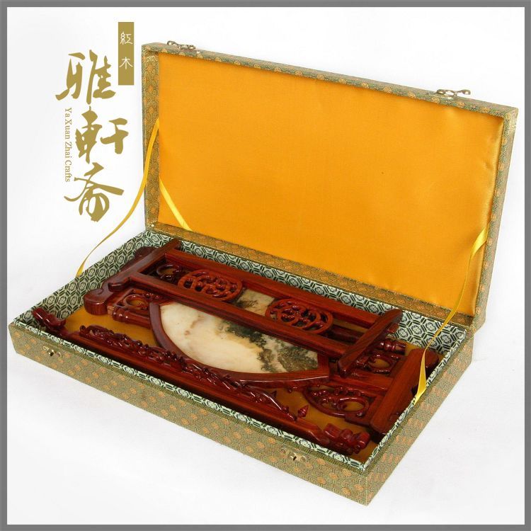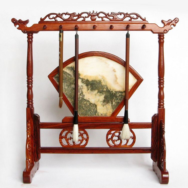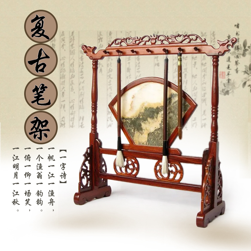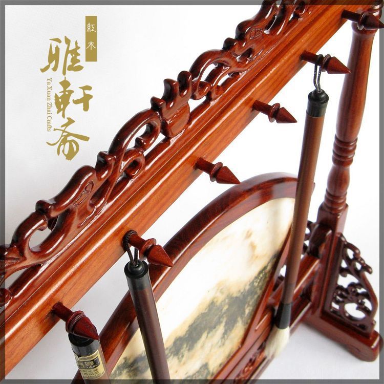 雅轩斋红木雕刻嵌大理石笔架毛笔挂