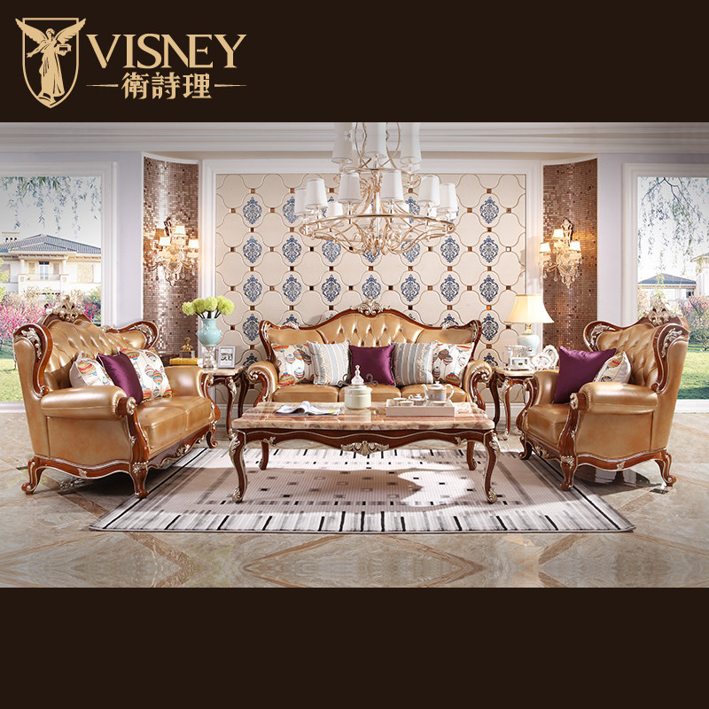 Visney卫诗理欧美式复古雕花实木茶几10042S7