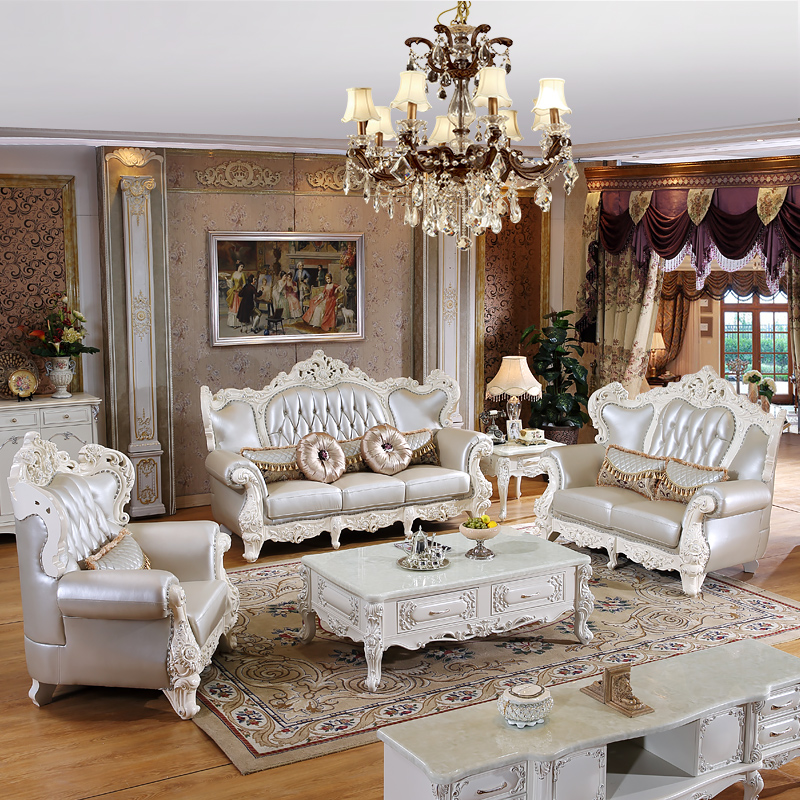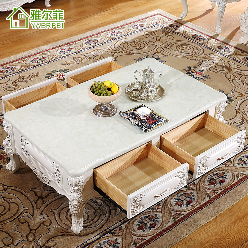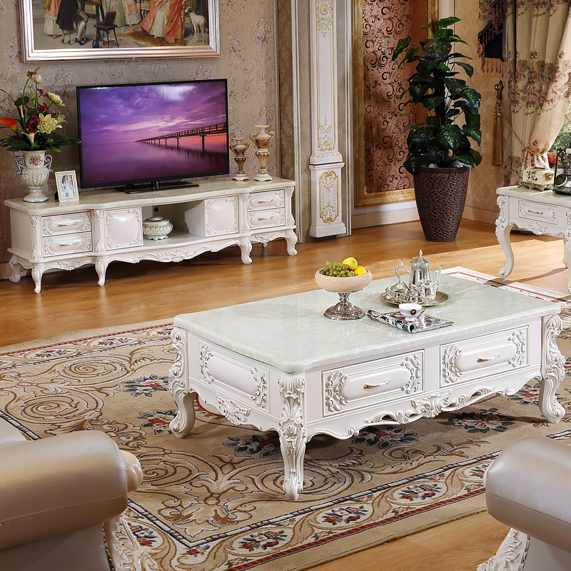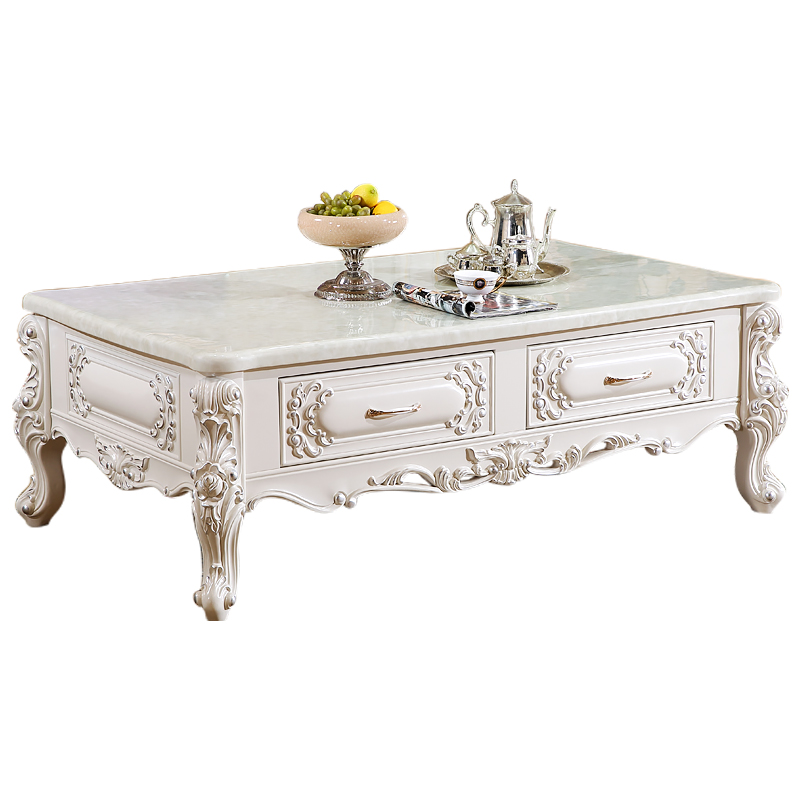 雅尔菲法式实木雕刻大理石茶几CJ033