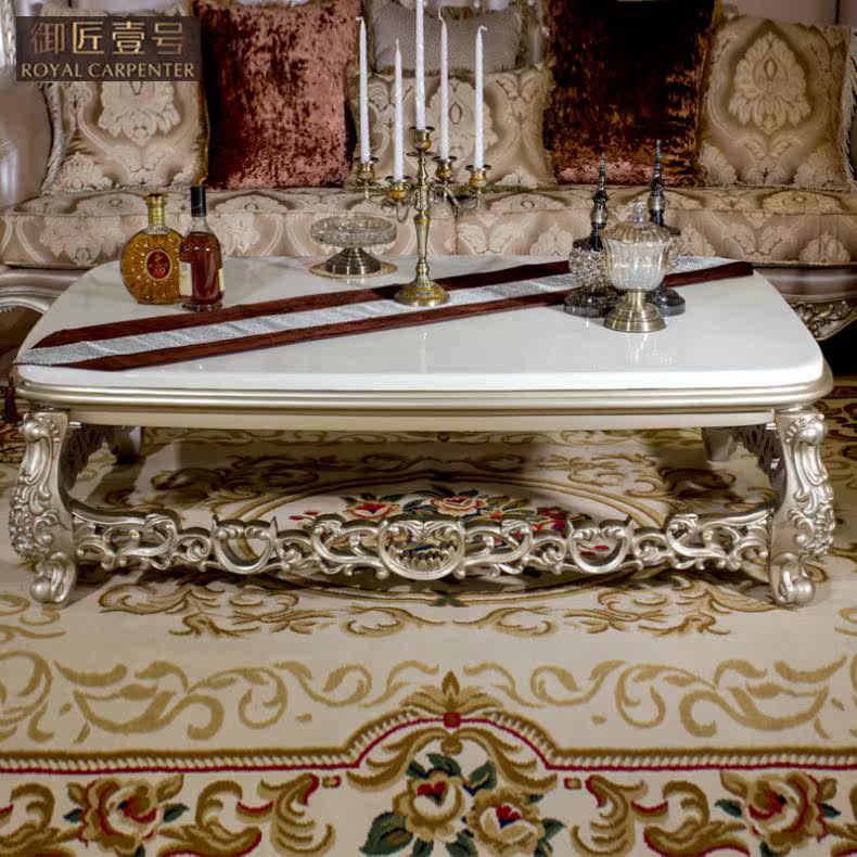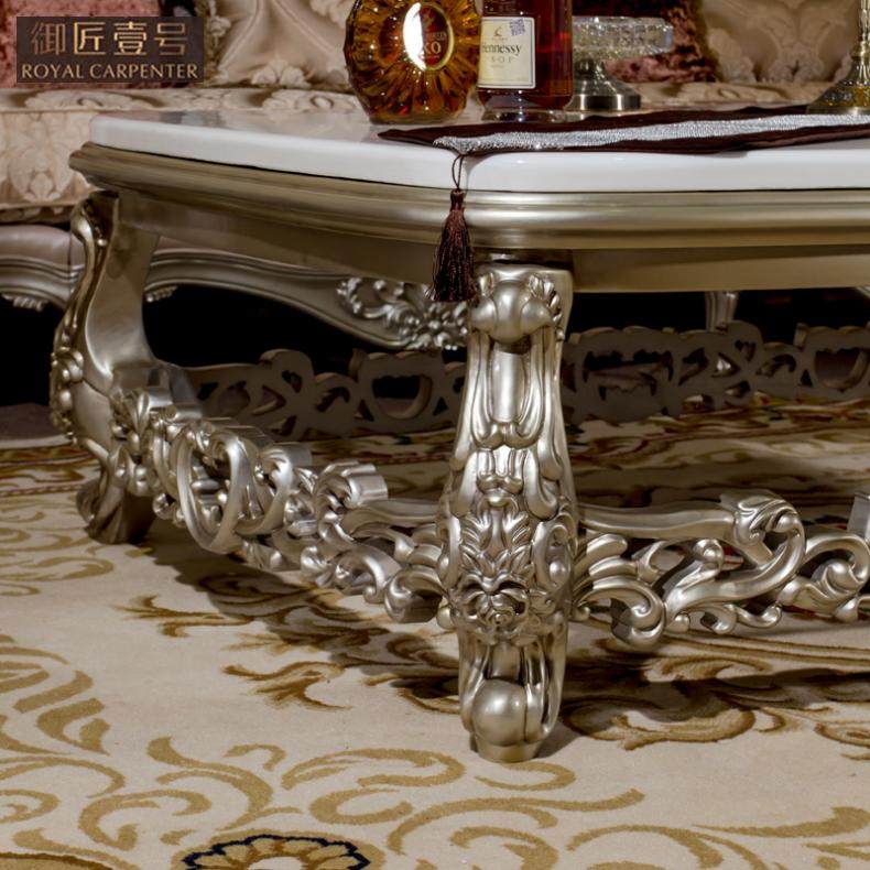 御匠壹号欧式实木雕花大理石茶几DJ-7063