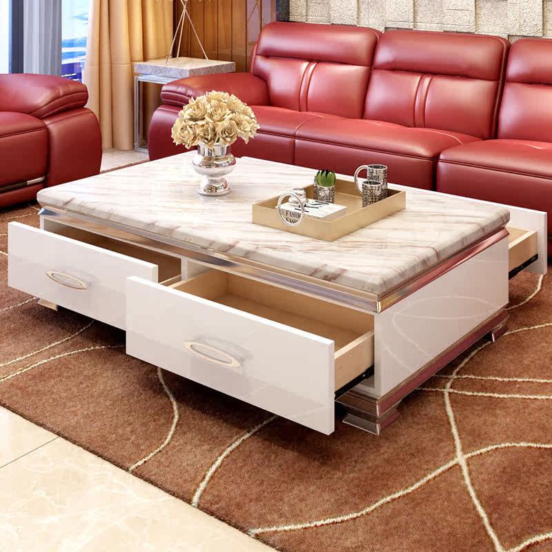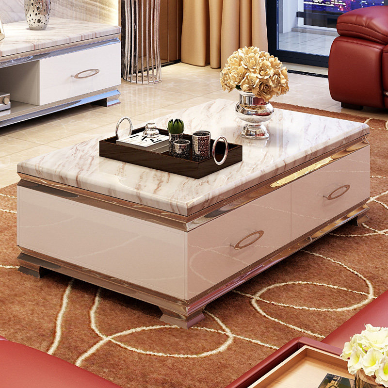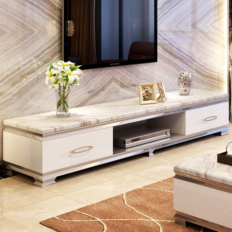 乐私现代简约大理石茶几地柜6007