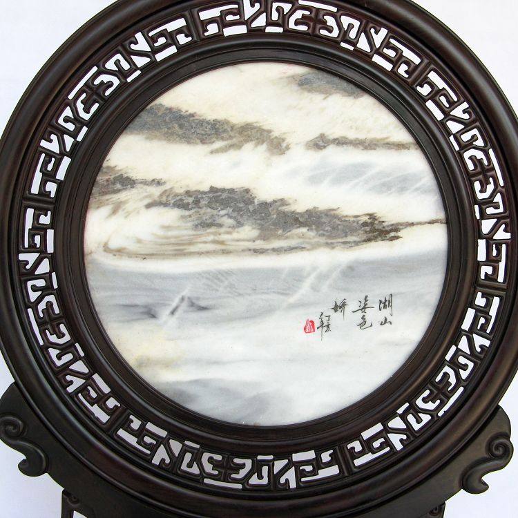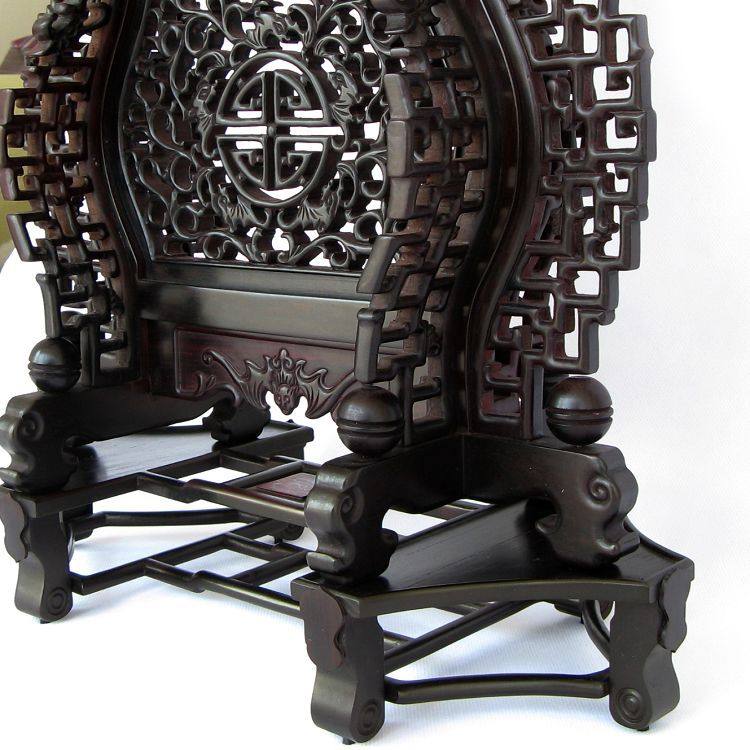 木石有约红木紫檀木雕大理石台屏 2011110723