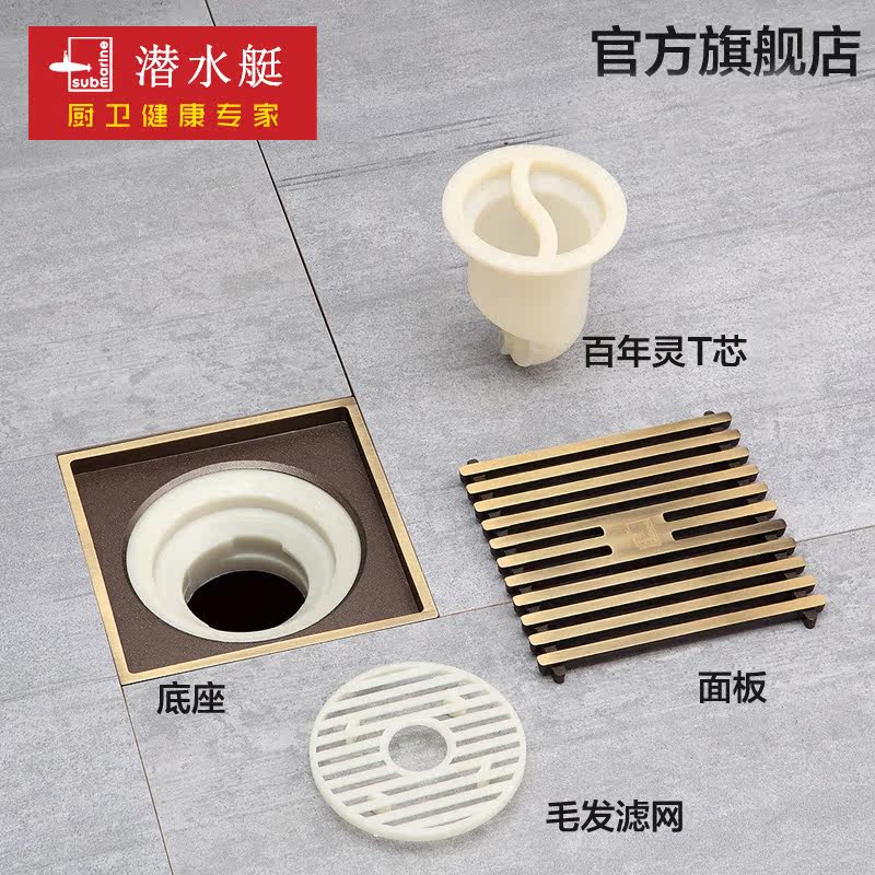 潜水艇铜拉丝地漏QLTK50-10
