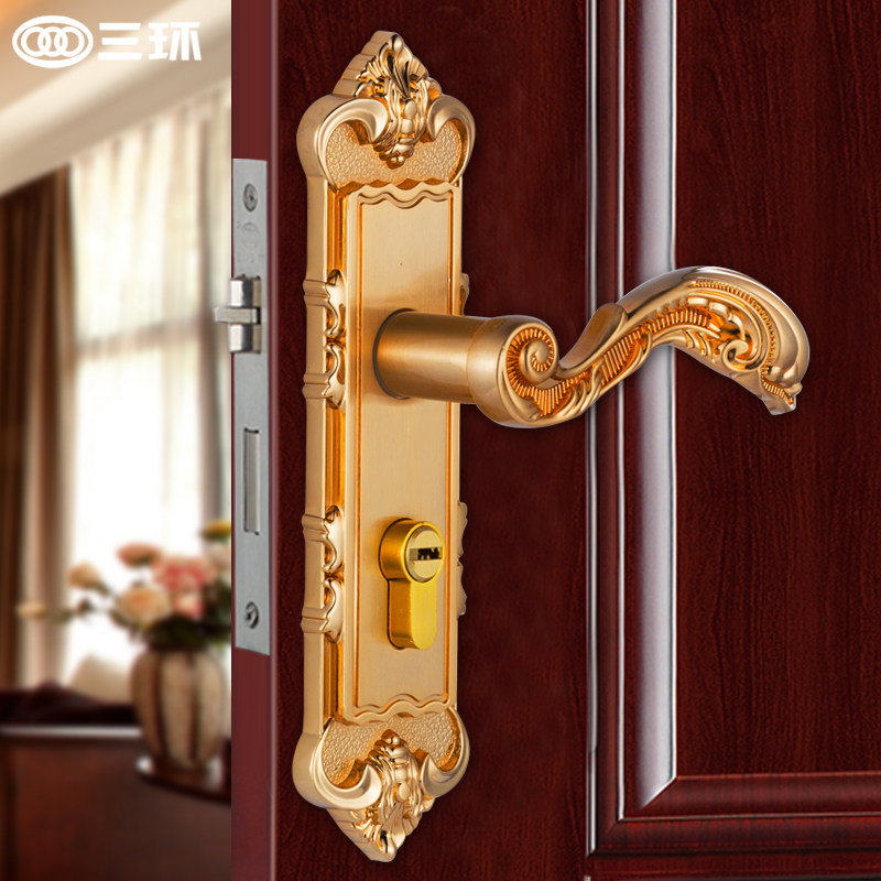 三环门锁欧式室内门锁欧式金色门锁3件套