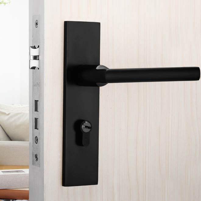 莱普太空铝黑色室内实木门锁Y082-P003