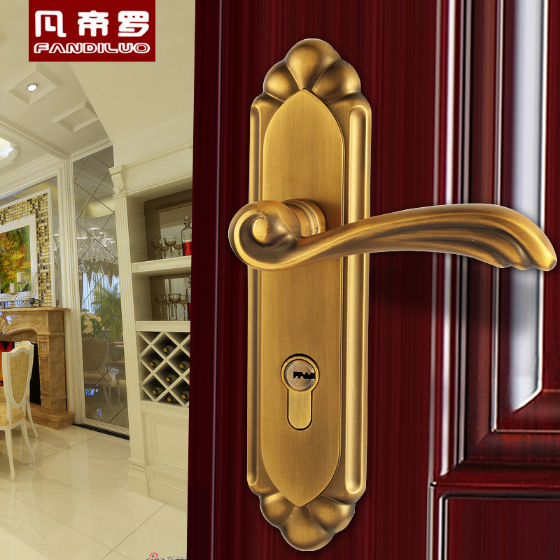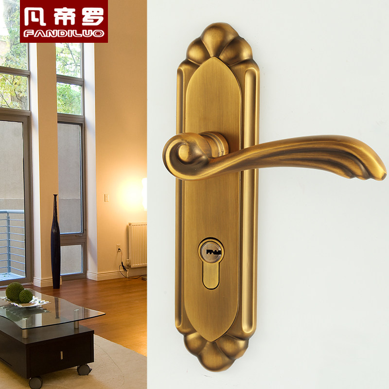 凡帝罗门锁黄古铜中式锁具家用室内实木门用双舌锁体三件套