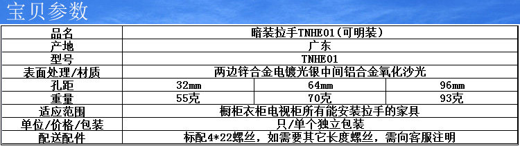 顶耐家具暗拉手TNHE01