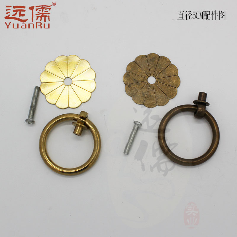 远儒铜雕仿古中式纯铜柜门抽屉拉手螺丝款拉环