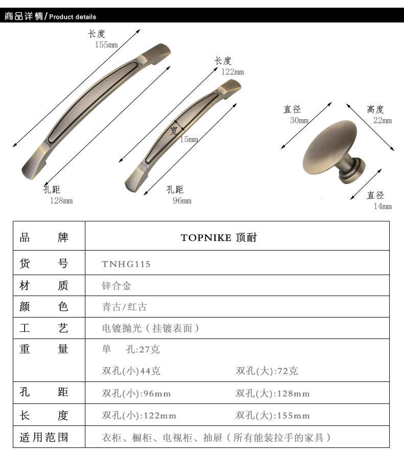 顶耐仿古欧式把手TNHG115