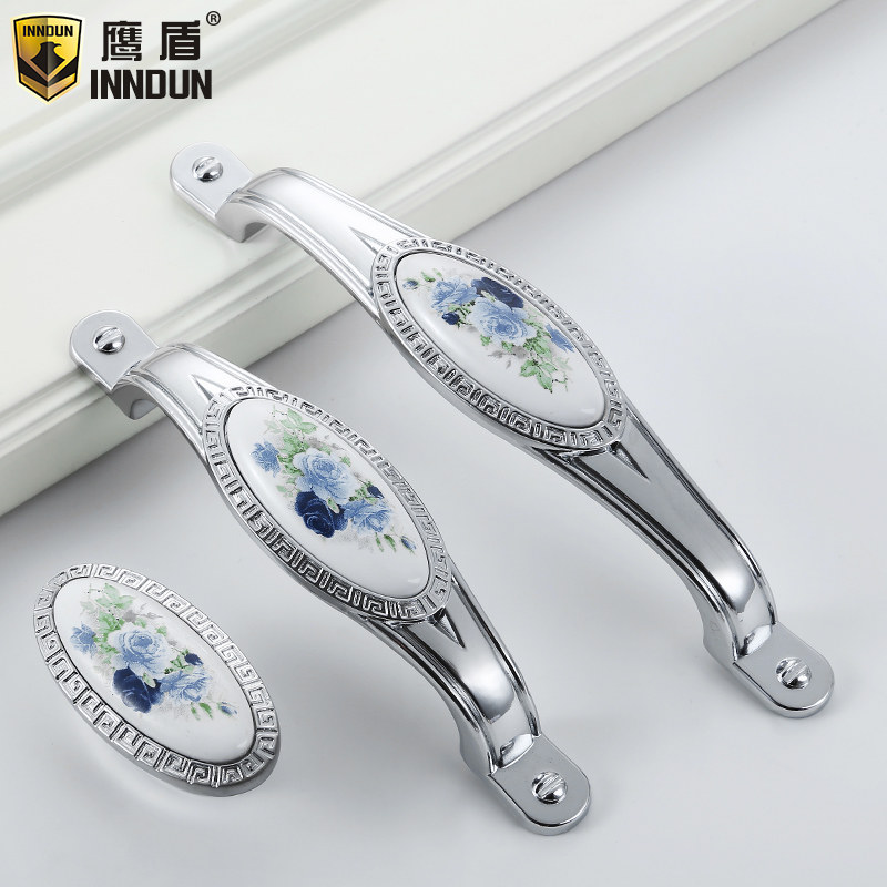 鹰盾欧式仿古田园银色陶瓷拉手LS-KFG02