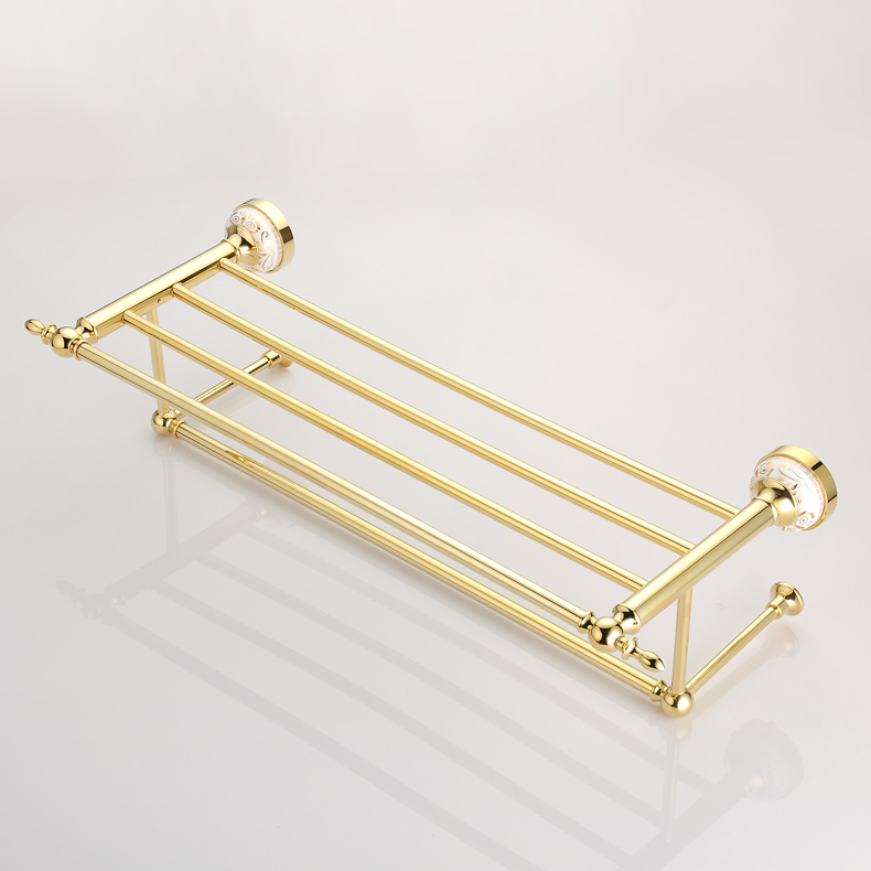 摩丹铜金色浴巾架欧式毛巾架仿古卫浴五金挂件