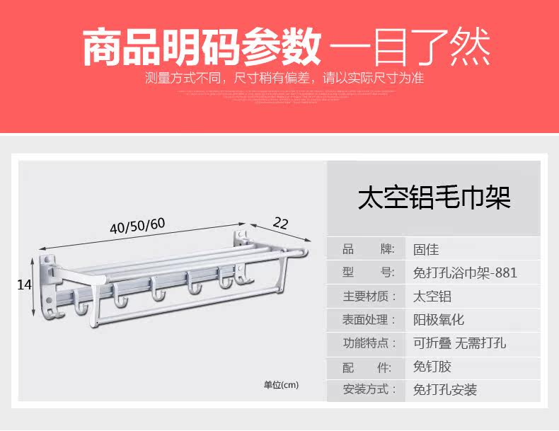固佳卫浴毛巾架太免打孔浴巾架