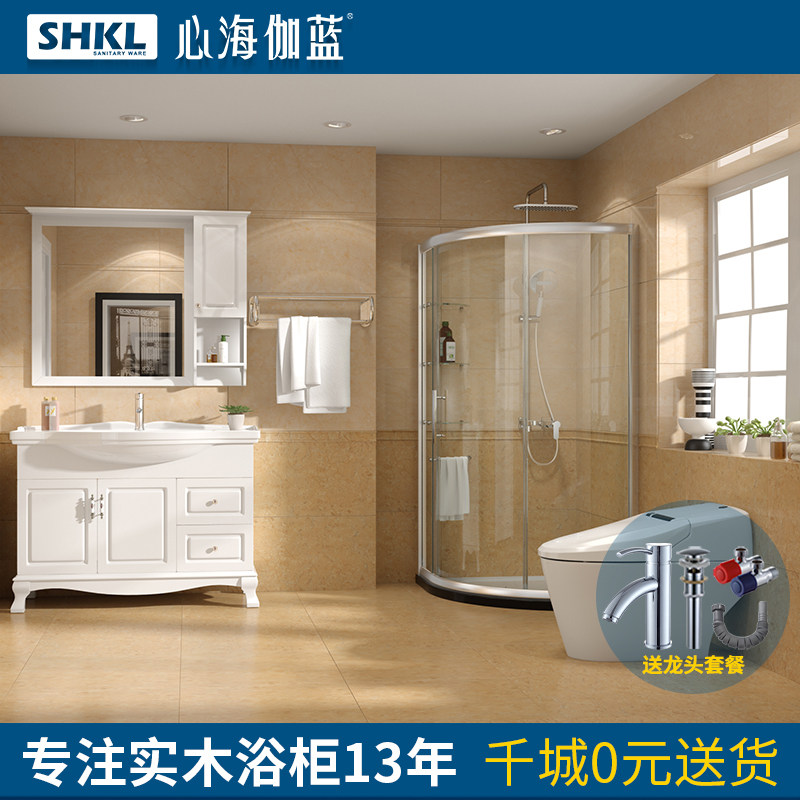 心海伽蓝1.2米简欧实木卫浴柜4086套装