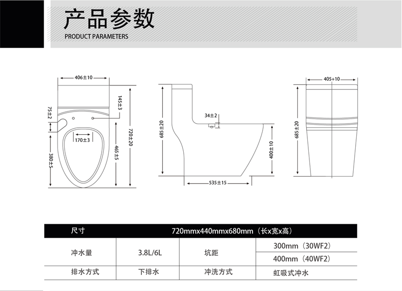 松下卫浴连体式抽水马桶CHZWLDN30WF2