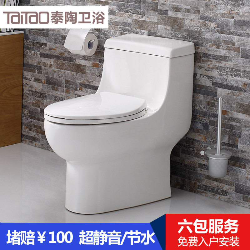 泰陶连体式虹吸抽水马桶坐便器静音防臭
