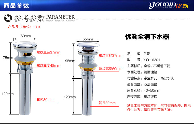 优勤卫浴全铜下水器6201