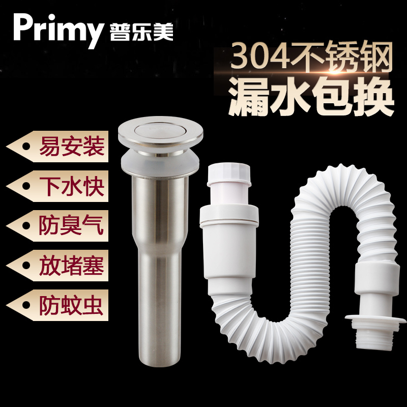 普乐美304不锈钢洗脸盆弹跳下水器面盆下水器