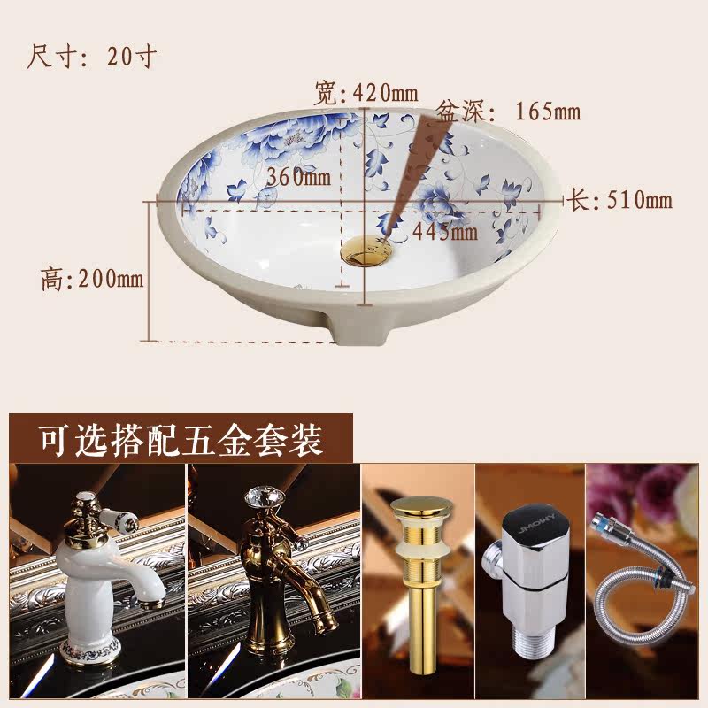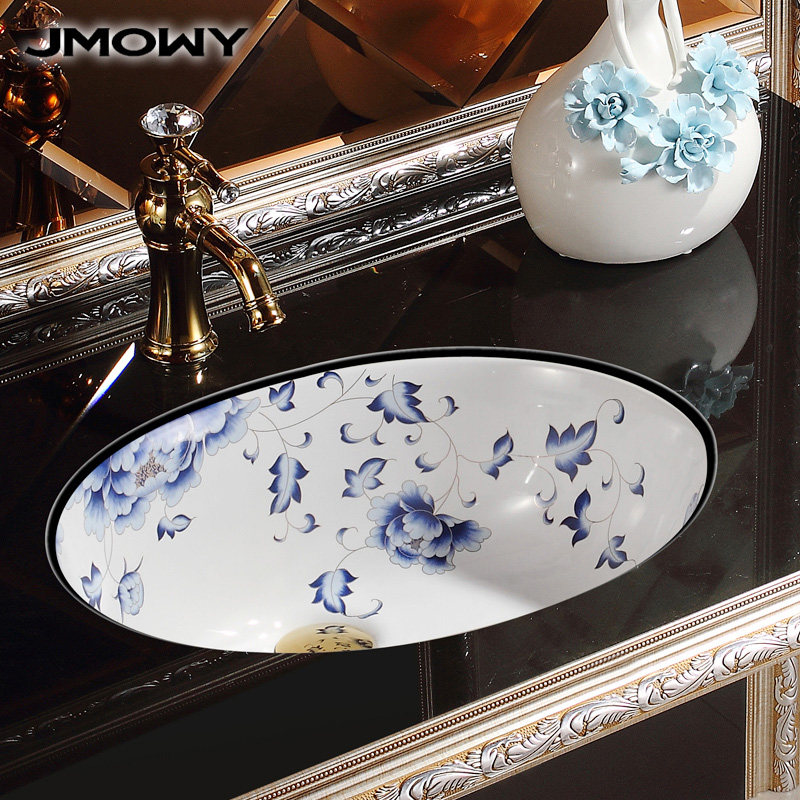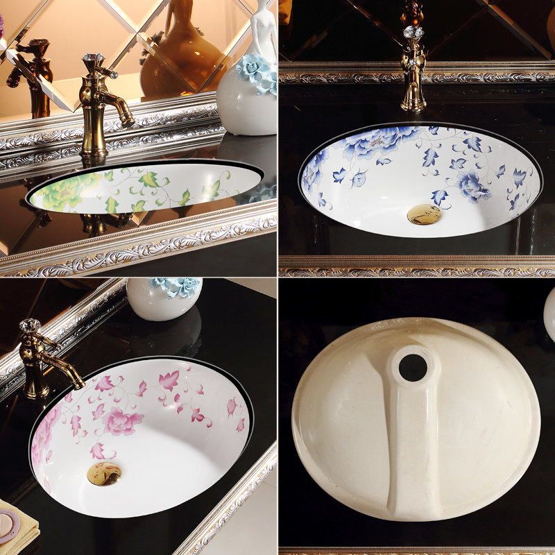 吉牧欧陶瓷洗手盆彩花艺术台嵌入式