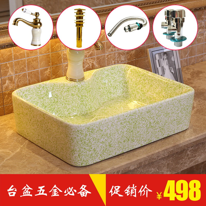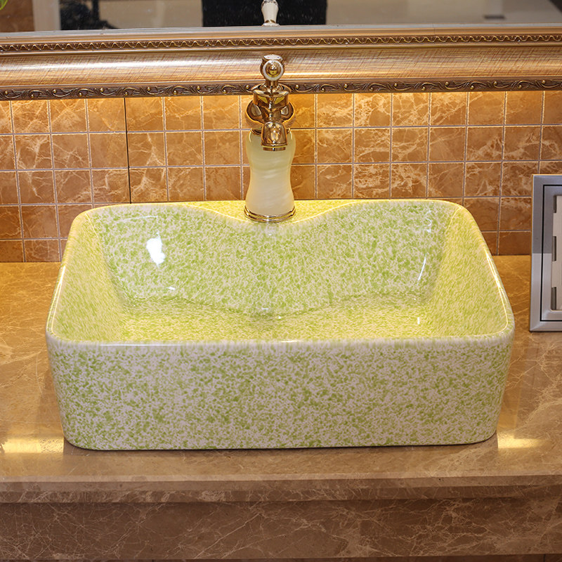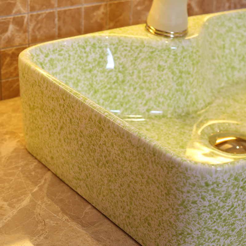 雨泉景德镇陶瓷卫浴台盆绿色龙头孔