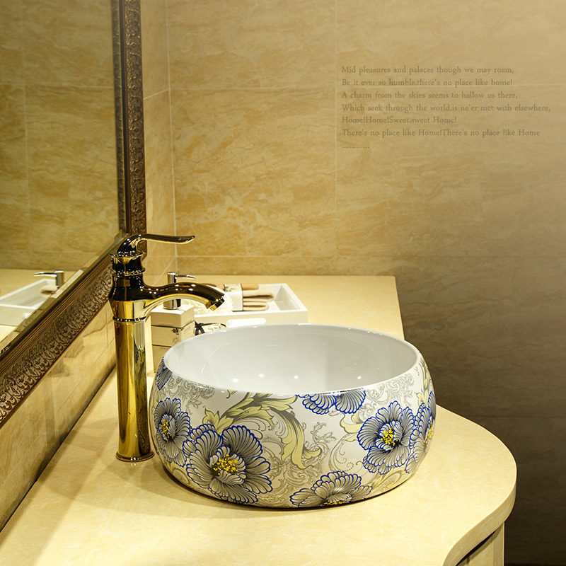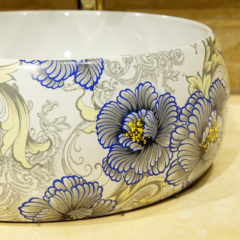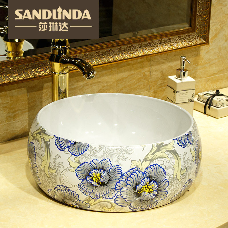 莎琳达台上盆洗脸盆5013天青花色