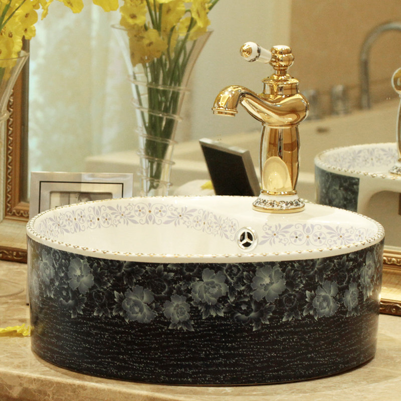 雨泉面盆洗脸盆陶瓷面盆yishuikon黑色