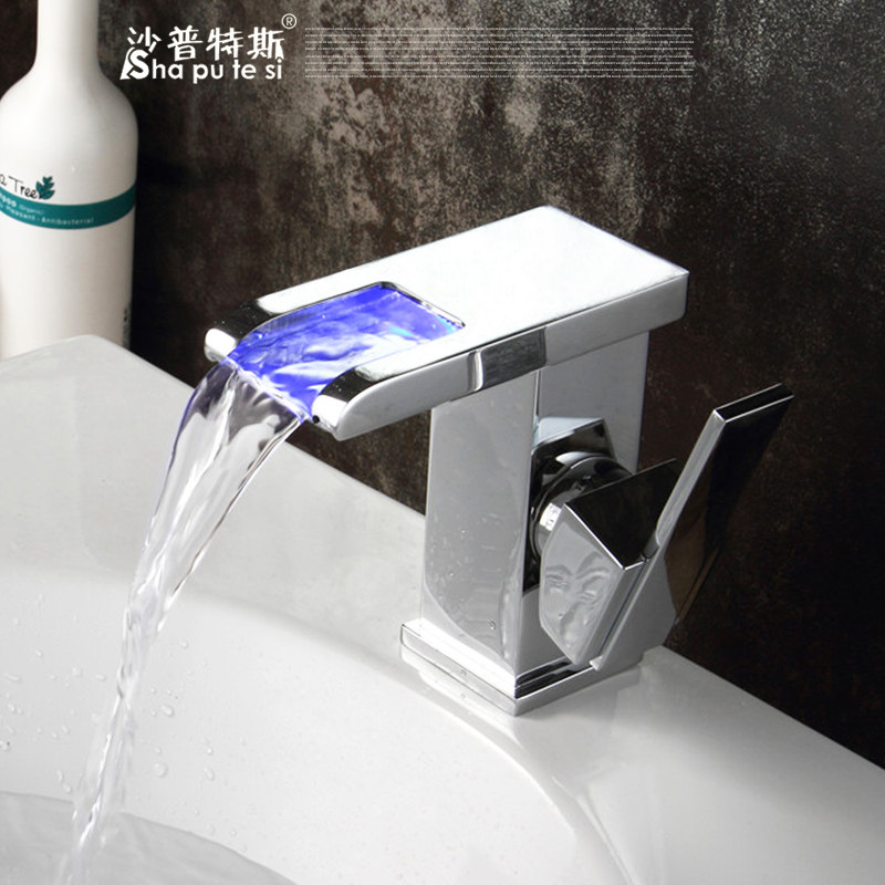 沙普特斯全铜欧式瀑布水龙头LED水龙头