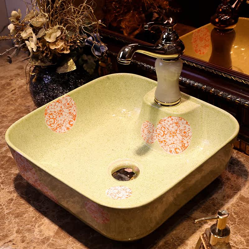 景焱高温色釉陶瓷洗脸盆423A翡翠绿游龙戏凤