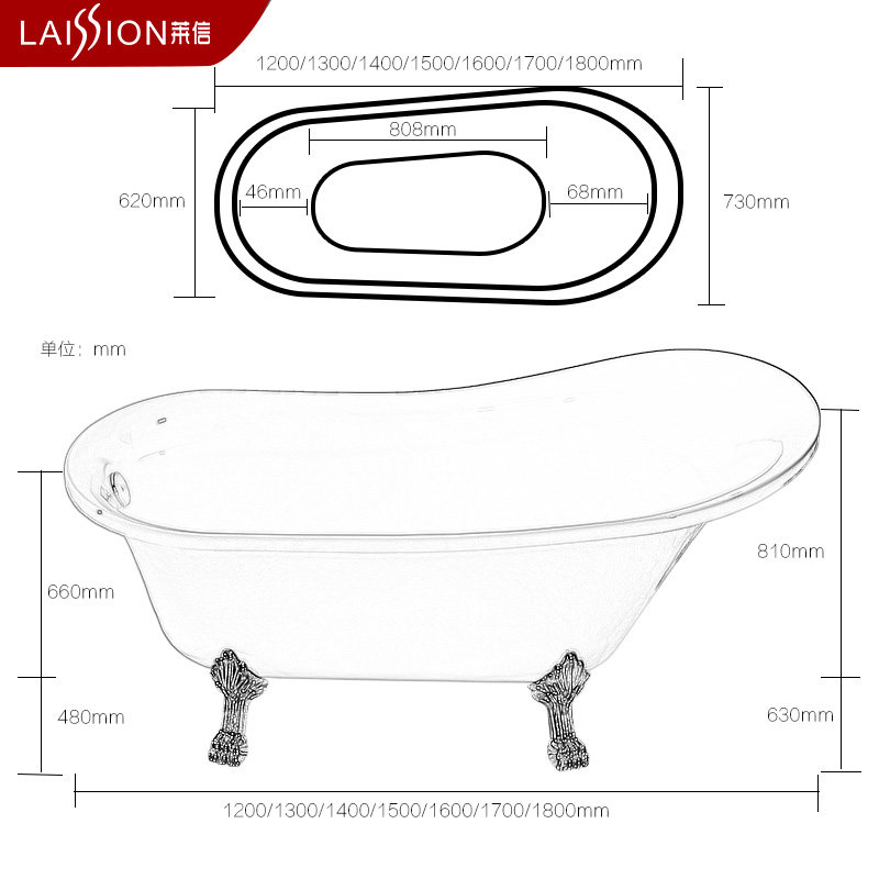 莱信欧式成人亚克力浴缸LS-Y56